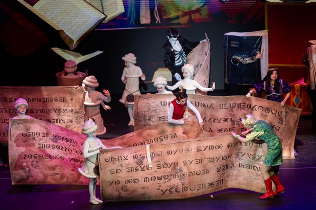 Герои спектакля поют, показывают акробатические номера и цирковые трюки – танцуют на роликах, жонглируют, демонстрируют элементы эквилибра и так далее. Актерам на сцене помогают артисты в зале, которые вовлекают публику в интерактивное общение – каждые 10 минут действие переходит со сцены в зал.