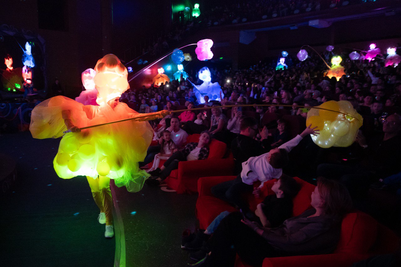 Герои постановки поют, показывают акробатические номера и цирковые трюки – танцуют на роликах, жонглируют, демонстрируют элементы эквилибра и так далее. Актерам на сцене помогают артисты в зале, которые вовлекают публику в интерактивное общение – каждые 10 минут действие переходит со сцены в зал! А под личиной вредной, но артистичной Бабы Яги скрывается известный стендапер Алексей Мамонов, резидент комедийных телешоу.
