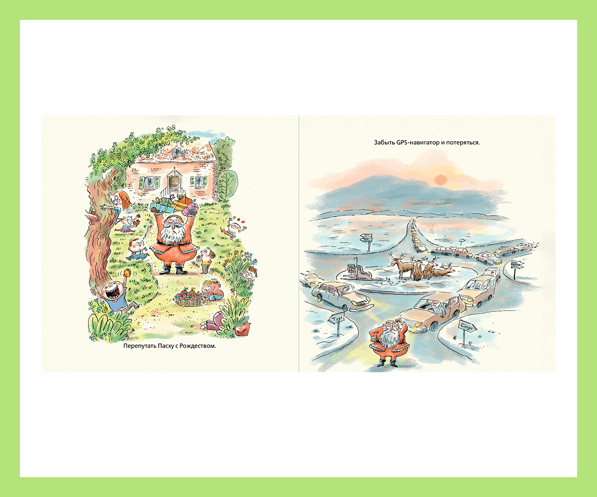 Но не волнуйтесь: что бы ни учудил Дед Мороз, новогоднее волшебство никуда не денется, утверждает автор этой веселой книги от «Альпина Дети»: «Дед Мороз может сделать селфи с оленем. Перепутать подарки. Даже съесть все пирожные, оставленные детьми, и застрять в трубе. Но чего Дед Мороз никогда-никогда не сделает? Он никогда не забудет про твой дом!»