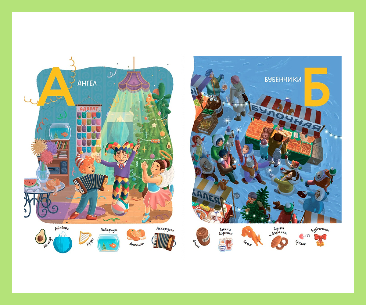 Автор этого виммельбуха, увидевшего свет в издательстве «Альпина Дети», придумала, как объединить под одной обложкой азбуку и Новый год. Нам кажется, ей это удалось – здесь обучение превращается в приключение!