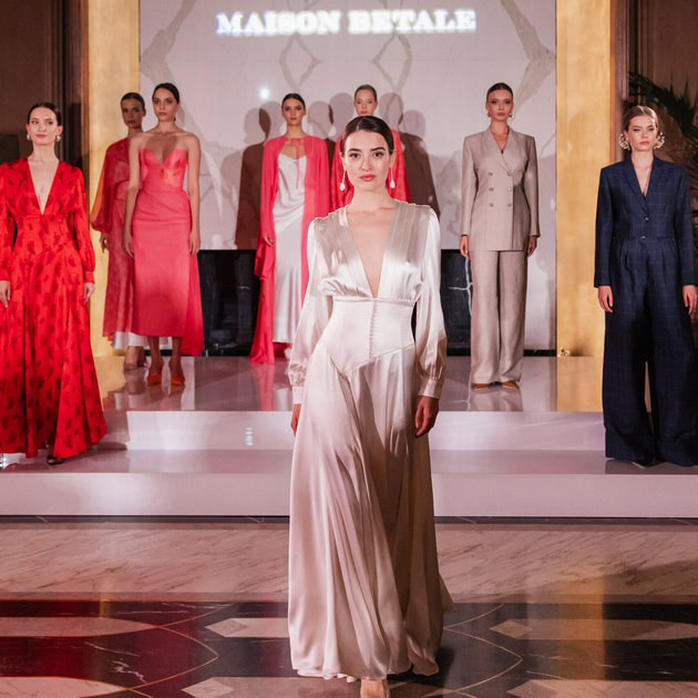 После показа основательница бренда Рада вышла к гостям и рассказала о том, что дом Maison Betale для нее – продолжение дела дедушки Бетала, который создавал одежду с той же любовью к материалу и вниманием к деталям. Коллекции выполнена из европейских тканей, созданных на заказ на семейных мануфактурах: шерсть поступает из Йоркшира, шелк – из Комо. Рассмотреть ее можно вблизи в отеле «Метрополь», где до 12 апреля будет работать pop-up Maison Betale.