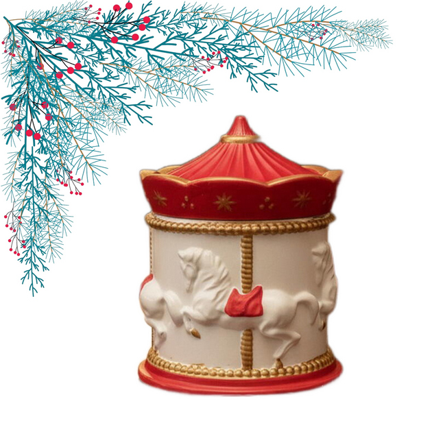 Оригинальная свеча в форме рождественской карусели выполнена из натурального соевого воска. Каждая деталь – от изящных лошадок до декоративных золотых акцентов – прорисована вручную, что делает изделие по-настоящему особенным. Аромат розового шампанского наполнит пространство сладкими нотами и создаст праздничное настроение. После того как свеча догорит, кашпо можно использовать как шкатулку для украшений, органайзер для мелочей или подсвечник.